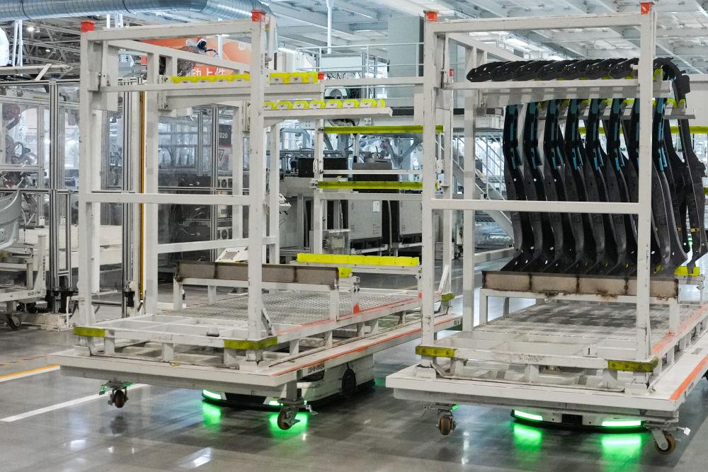從研發(fā)制造到測試應用,北京發(fā)揮汽車產(chǎn)業(yè)長期積累,積極擁抱新品牌、新技術(shù),新模式,新能源汽車產(chǎn)業(yè)蓬勃發(fā)展,產(chǎn)業(yè)鏈供應鏈不斷鞏固完善。這是自主移動機器人在北京小米汽車工廠搬運物資(2025年6月16日攝)。