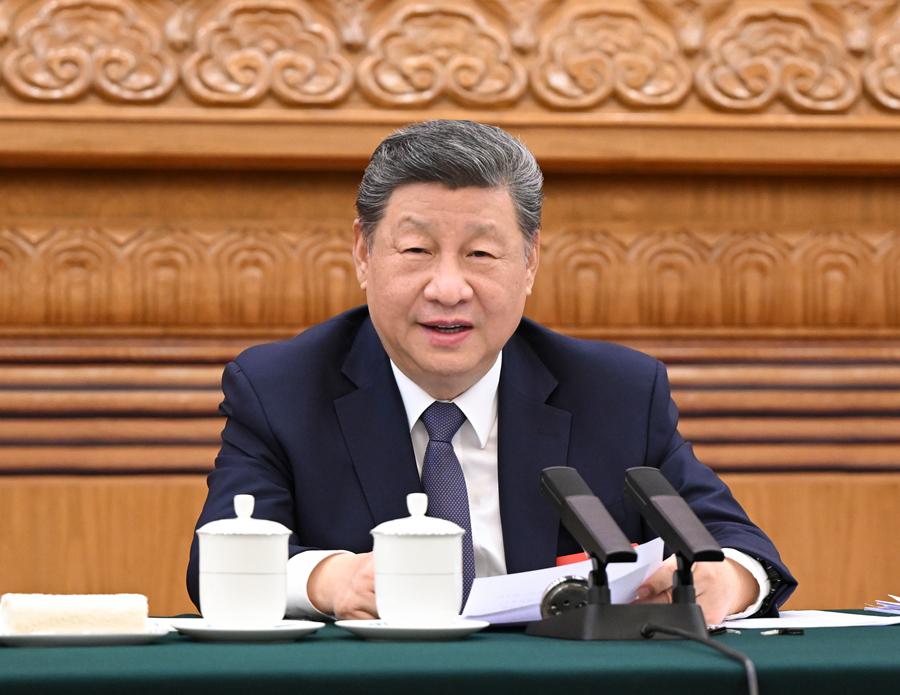 3月5日下午,中共中央總書記、國家主席、中央軍委主席習(xí)近平參加他所在的十四屆全國人大四次會(huì)議江蘇代表團(tuán)審議。