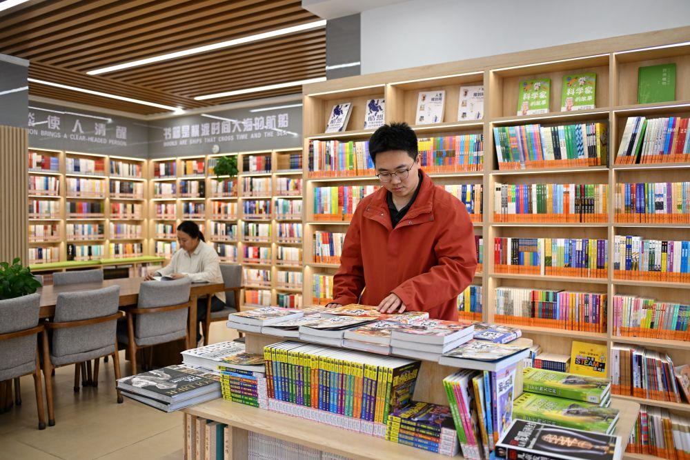 2025年3月25日,居民在雄安新區(qū)容西片區(qū)賢溪社區(qū)XIN空間公益圖書(shū)館挑選書(shū)籍。