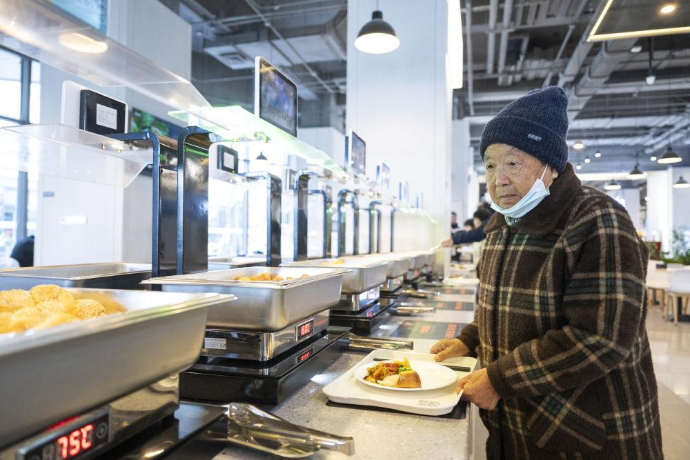 2025年11月25日,老人在雄安新區(qū)啟動(dòng)區(qū)文華社區(qū)華序府智慧食堂內(nèi)取餐。在這座食堂,居民“刷臉”即可完成身份識(shí)別,取餐時(shí)系統(tǒng)自動(dòng)綁定餐盤(pán)并實(shí)時(shí)結(jié)算,實(shí)現(xiàn)無(wú)感支付。此外,取餐區(qū)具備智能稱重與熱量測(cè)算功能、健康一體機(jī)可以生成健康報(bào)告并提供飲食建議。