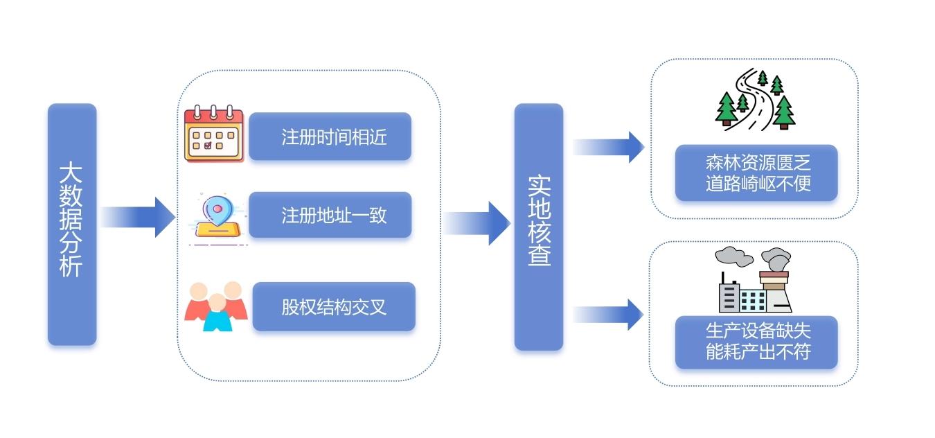 為進一步核實情況,檢查組前往3戶企業(yè)所在地開展實地核查發(fā)現(xiàn),企業(yè)所在地布拖縣屬高寒山區(qū),森林資源僅占全縣總面積的8.04%,植被資源較為匱乏。此外,布拖縣不通高速且崎嶇狹窄路段居多,冬季路面長期結冰,大量貨物外運存在困難。林木采伐、銷售受生態(tài)環(huán)境和運輸條件雙重限制,根本無法支撐三戶企業(yè)開票信息反映出來的億元級原木交易。而所謂的“加工廠”內(nèi)雖有部分設備,但加工板材所必需的熱壓機等設備并不具備。通過調取電力公司數(shù)據(jù)發(fā)現(xiàn),2023年至2024年該工廠共產(chǎn)生電費13萬元,與其大額的板材銷量所需能耗相差甚遠,明顯違背基本生產(chǎn)邏輯。