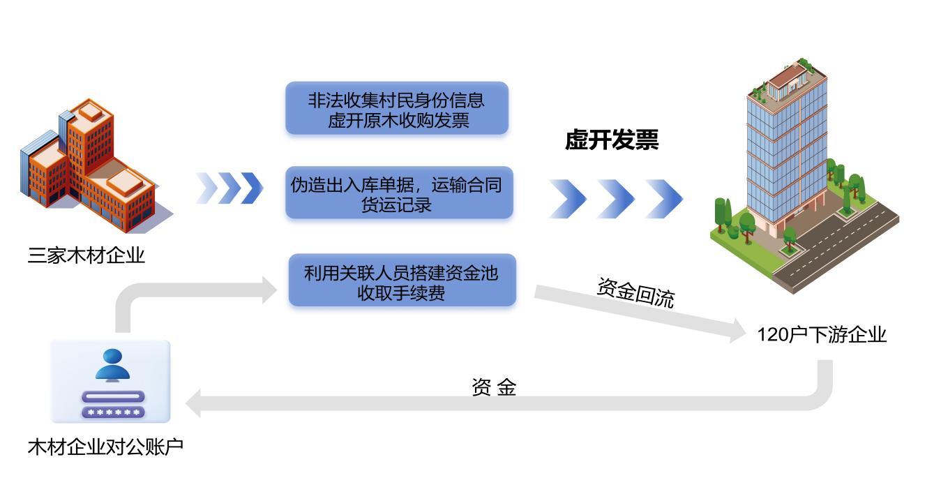 至此,在專案組的全方位徹查下,涼山布拖縣3戶企業(yè)實為“道具工廠”徹底現(xiàn)形:以劉楊、公大偉為首的犯罪團伙,通過設立3戶木業(yè)公司,以用工為名,非法收集村民身份信息,為自己虛開原木收購發(fā)票;同時通過購買二手設備、臨時雇傭人員等手段營造生產(chǎn)假象,為他人虛開板材類增值稅專用發(fā)票。