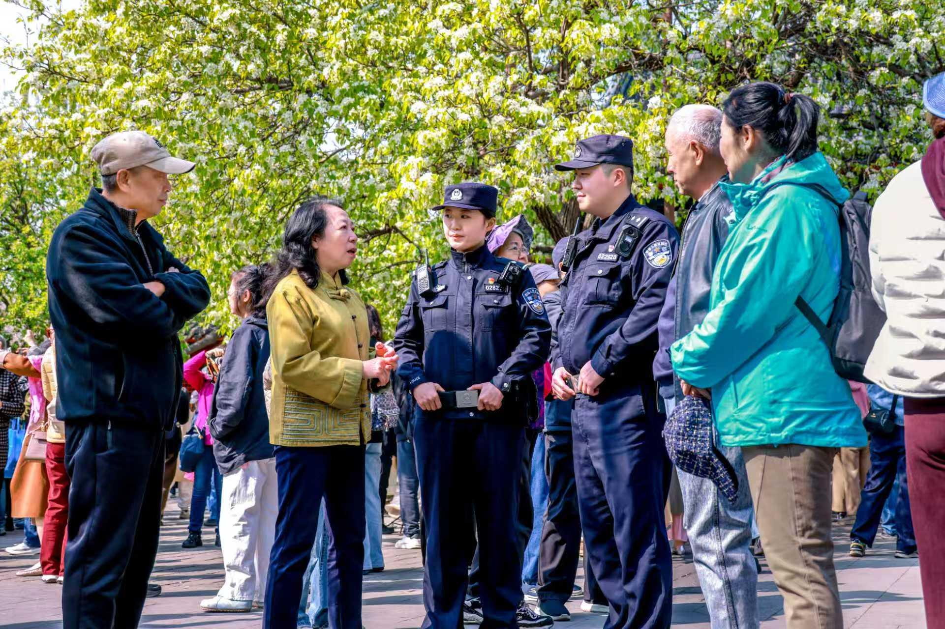 進(jìn)入春季賞花期,北京市東城區(qū)各大公園景點(diǎn)繁花盛放,吸引大批游客前來(lái)打卡。面對(duì)持續(xù)高位運(yùn)行的客流量,北京市公安局東城分局堅(jiān)持“遠(yuǎn)端疏導(dǎo)、近端分流”,優(yōu)化游覽線路,適時(shí)采取分段引導(dǎo)、循環(huán)通行等措施,確保游覽秩序平穩(wěn)有序。