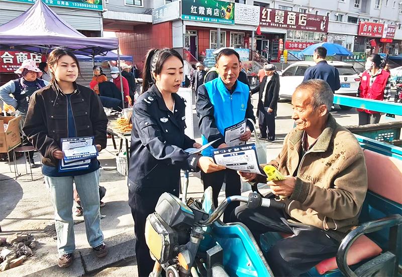 春季農(nóng)忙時節(jié),群眾農(nóng)事作業(yè)與出行需求激增,道路交通安全風(fēng)險隱患隨之上升。為從源頭預(yù)防和減少道路交通事故,以法治力量守護(hù)群眾春耕生產(chǎn)和出行安全,4月7日,新疆生產(chǎn)建設(shè)兵團(tuán)第五師八十四團(tuán)司法所聯(lián)合博樂墾區(qū)公安局交警大隊、八十四團(tuán)平安法治建設(shè)辦公室等部門,以趕集日為契機(jī),走進(jìn)集市開展《中華人民共和國道路交通安全法》宣傳活動,將行車安全知識與交通法律法規(guī)送到群眾身邊,為構(gòu)建良好的交通環(huán)境注入法治力量。