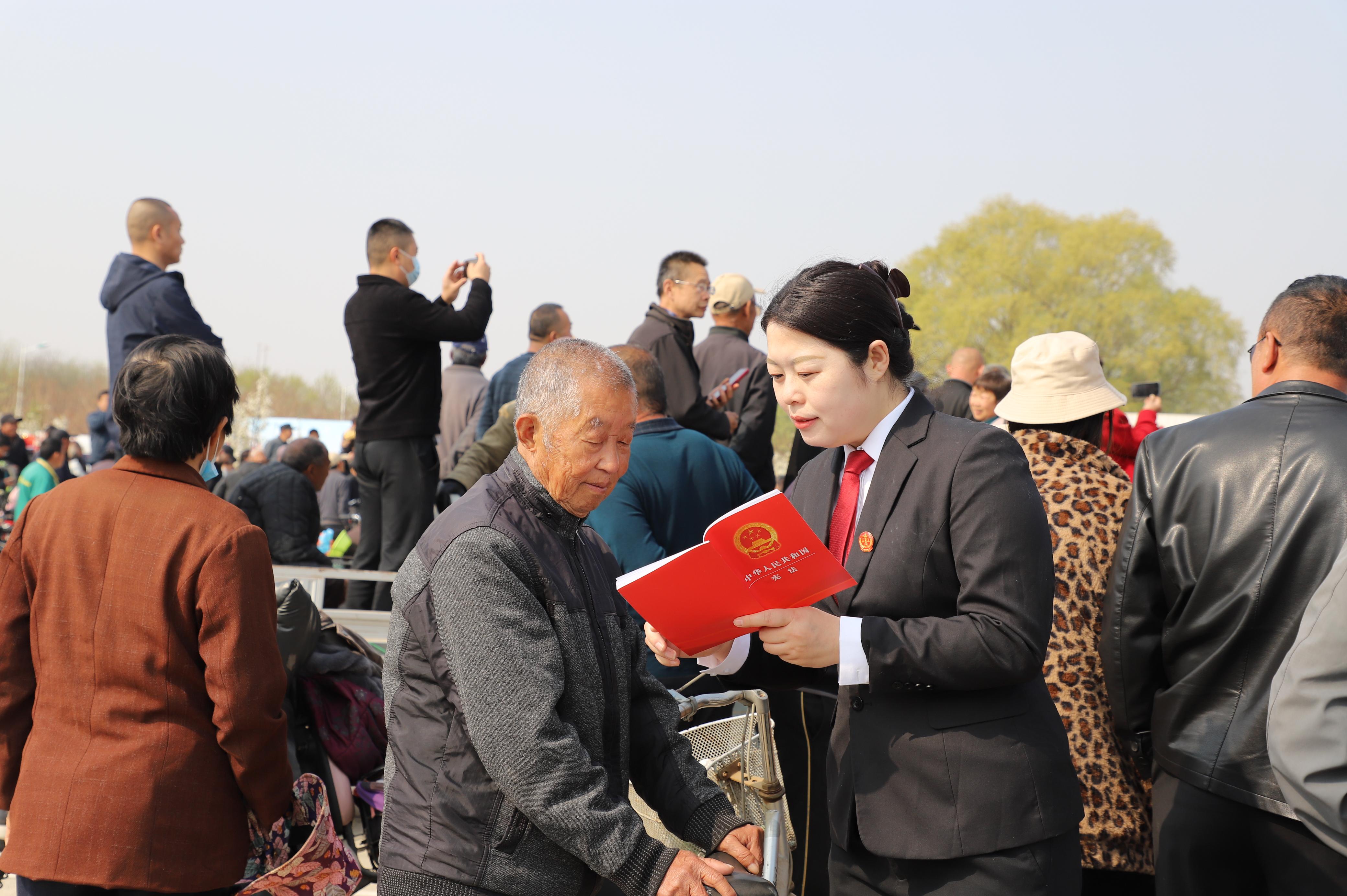 活動現(xiàn)場,游人如織、氛圍熱烈。干警們在人流密集區(qū)域設(shè)立普法咨詢臺,懸掛普法宣傳橫幅,擺放各類法治宣傳資料,以群眾喜聞樂見、通俗易懂的方式,開啟“沉浸式”普法。干警們圍繞群眾關(guān)心的民間借貸糾紛、婚姻家庭矛盾、土地承包權(quán)益等與生活息息相關(guān)的法律問題,用真實案例講解法律條文,把專業(yè)的法律知識轉(zhuǎn)化為接地氣的語言,讓群眾聽得懂、記得住。