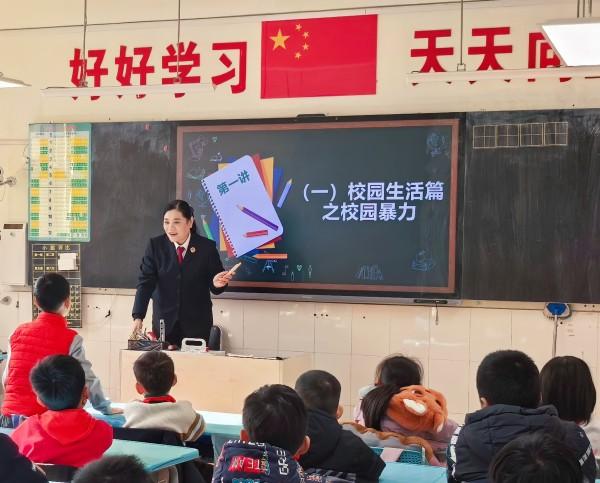 圖為檢察官劉艷麗在普法課堂上引導(dǎo)孩子們對(duì)校園欺凌和網(wǎng)絡(luò)犯罪說“不”,讓孩子們?cè)诨?dòng)中知敬畏、明底線、懂自護(hù)。
