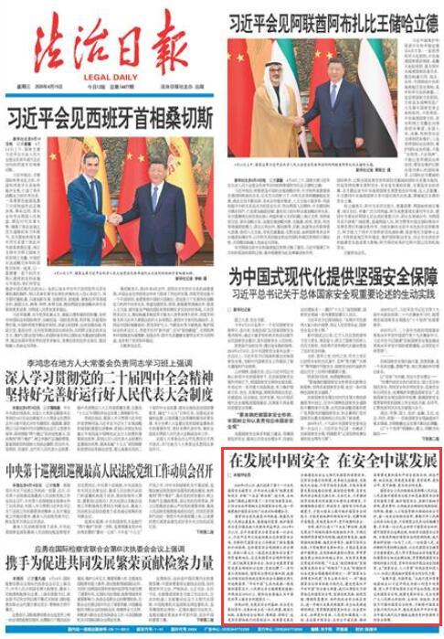 “備豫不虞,為國常道?!弊屛覀兏泳o密地團結在以習近平同志為核心的黨中央周圍,深入學習貫徹落實習近平法治思想,堅持總體國家安全觀,統(tǒng)籌發(fā)展和安全,充分發(fā)揮廣大人民群眾積極性、主動性、創(chuàng)造性,共筑堅不可摧的國家安全防線,不斷提升國家安全能力現(xiàn)代化水平,建設更高水平平安中國,為中國式現(xiàn)代化行穩(wěn)致遠提供更加堅強有力的安全保障。