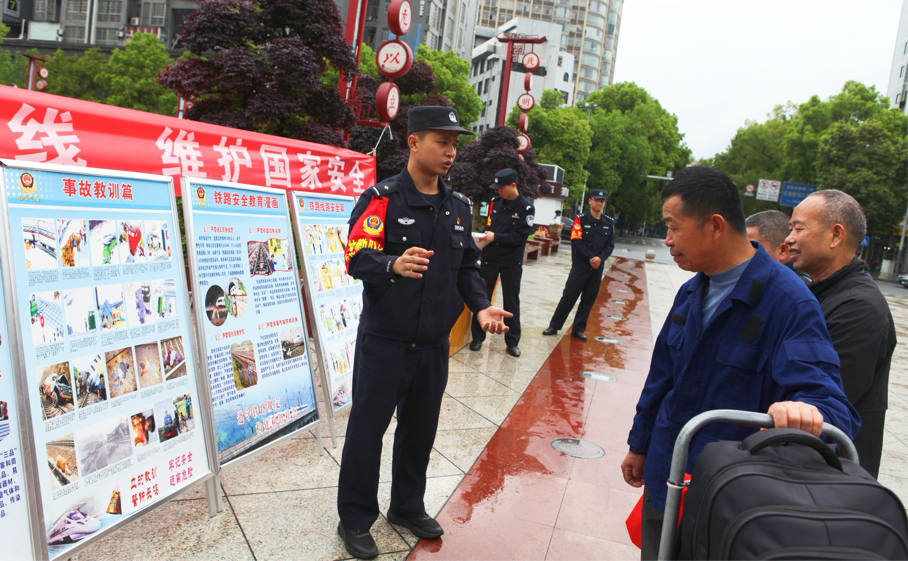 今年4月15日是第11個(gè)全民國家安全教育日。為了向廣大旅客普及相關(guān)法律知識(shí),吉首站派出所提前部署,組織民警在吉首站廣場(chǎng)掛置宣傳橫幅、設(shè)立宣傳臺(tái)和宣傳展板,對(duì)進(jìn)站旅客開展現(xiàn)場(chǎng)宣講。