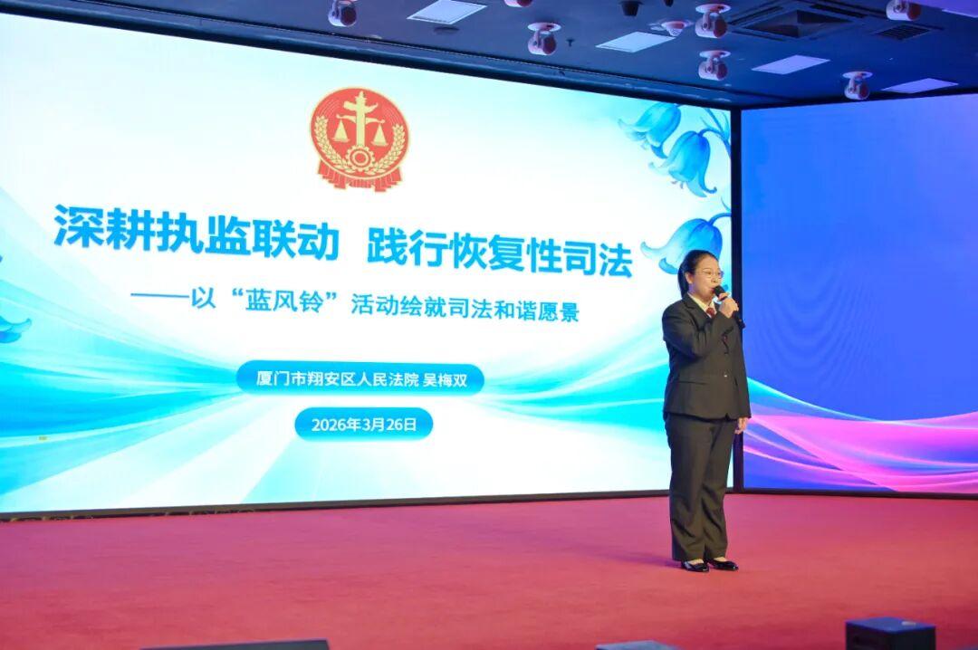 高林在致辭中表示,“藍風鈴”恢復性司法是福建省監(jiān)獄“紅黃藍紫”四色改造工作法之一,是統(tǒng)籌推進教育改造、社區(qū)矯正、安置幫教、糾紛調解、法治宣傳“五項工作”和踐行新時代“楓橋經(jīng)驗”的重要舉措。福建省司法行政系統(tǒng)要以此次活動為新的起點,加強與法院、檢察院等政法部門溝通聯(lián)系,持續(xù)完善機制,抓好成果轉化,推動恢復性司法與監(jiān)獄執(zhí)法辦案、罪犯教育改造、回歸幫扶等工作深度融合,講好福建監(jiān)獄“藍風鈴”恢復性司法故事,切實把工作成果轉化為治理效能,為加快建設更高水平平安福建、法治福建作出新的更大貢獻。