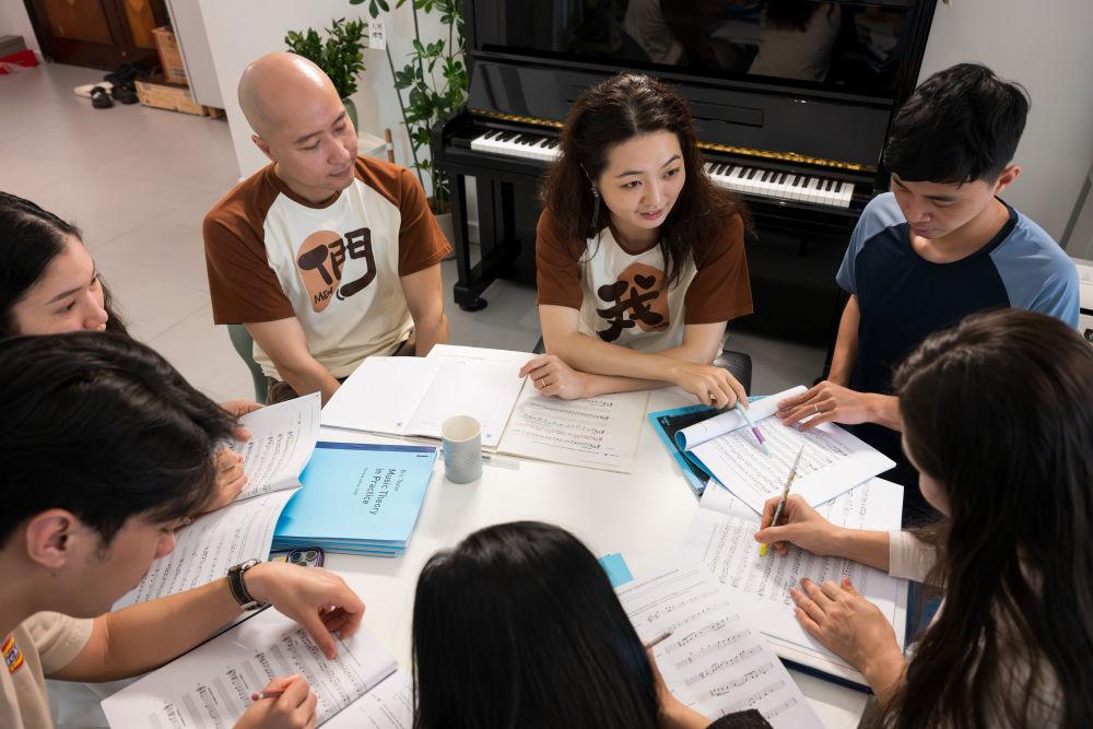 越南指揮家童光榮和中國作曲家莫雙雙是一對“跨國伉儷”,兩人聯(lián)手創(chuàng)立了“新活力”樂團(tuán),將越南傳統(tǒng)竹樂和中國音樂元素融合編排,演繹出新的東方韻味。這是2025年3月28日,童光榮(中左)與莫雙雙(中右)在位于越南首都河內(nèi)的家中為樂團(tuán)成員授課。