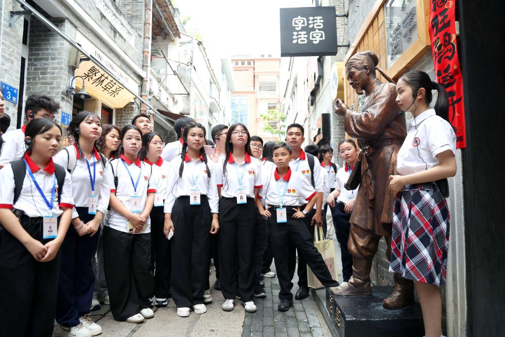 4月11日,越南青少年在廣州永慶坊了解活字印刷相關(guān)知識。