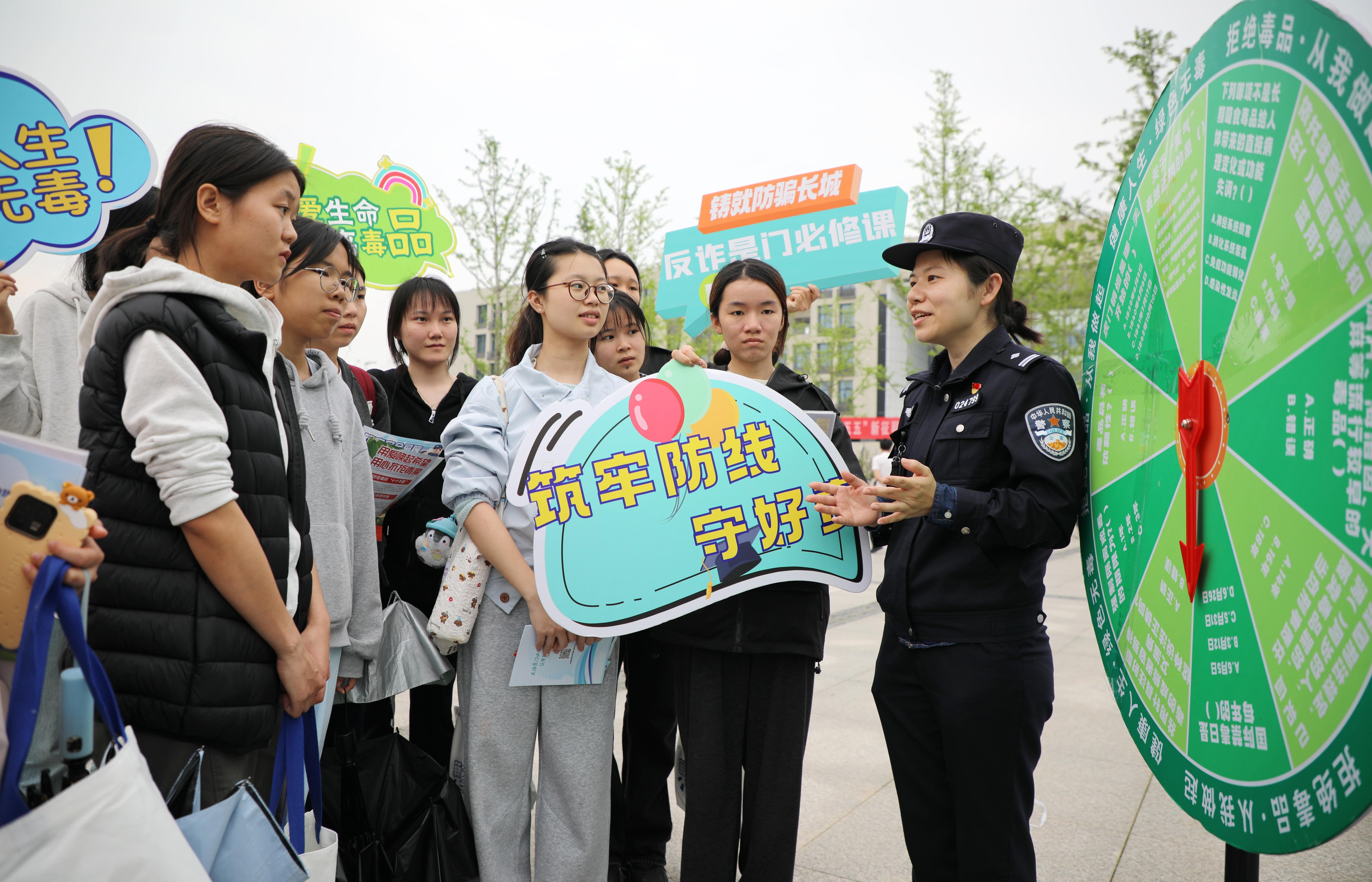 圖為4月15日,民警走進江西財經(jīng)職業(yè)學(xué)院為學(xué)生講解禁毒知識。