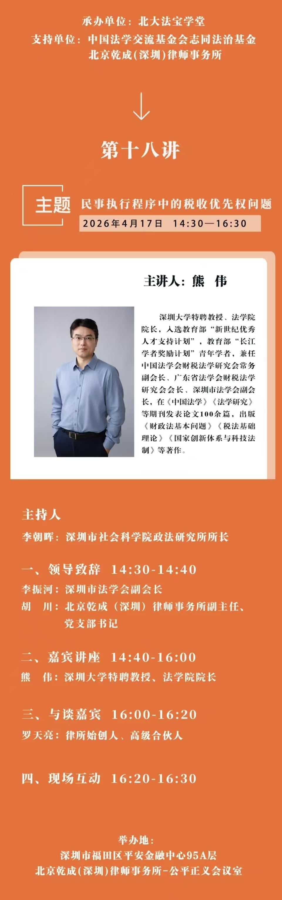 “全國(guó)青年法學(xué)家公開課”系列公益講座第十八講將于4月17日舉辦