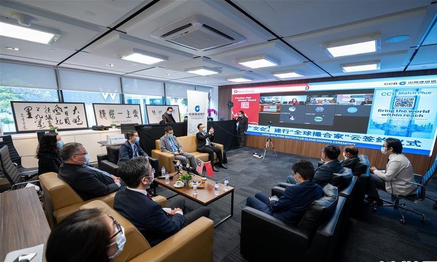 6月17日,馬來西亞總理對華事務(wù)特使張慶信在吉隆坡表示,本周開幕的第127屆廣交會以網(wǎng)上形式舉行,在新冠疫情背景下為推動“一帶一路”相關(guān)經(jīng)貿(mào)合作提供新機遇。 圖為6月17日,在馬來西亞吉隆坡,與會者在中馬跨境“云簽約”活動上連線。 新華社記者 朱煒 攝新華社記者 朱煒 攝