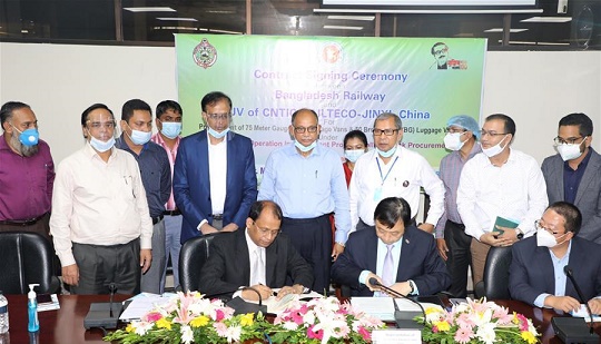 孟加拉國(guó)鐵道部長(zhǎng)努如爾·伊斯拉姆·蘇簡(jiǎn)及中孟嘉賓參加了8月31日的簽約儀式。中國(guó)技術(shù)進(jìn)出口集團(tuán)有限公司(簡(jiǎn)稱(chēng)中技公司)代表中技聯(lián)合體簽署合同。