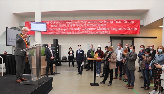 9月24日,在比利時奧斯坦德的奧斯坦德—布魯日機(jī)場,比利時西佛蘭德省省長卡爾·德卡呂韋在儀式上致辭。 比利時奧斯坦德—布魯日機(jī)場24日舉行隆重儀式,歡迎北京宏遠(yuǎn)集團(tuán)的貨運航班正式入駐。這標(biāo)志著連接該機(jī)場與中國多地的“空中絲綢之路”新航線正式開通。 新華社記者 鄭煥松 攝