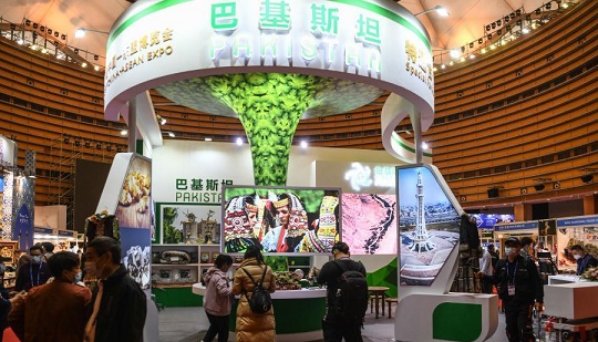 11月27日,在廣西南寧國際會展中心,消費者在“一帶一路”國際展區(qū)選購商品。 新華社記者 張愛林 攝