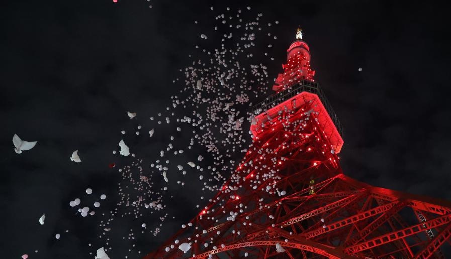 這是2020年1月24日在日本東京拍攝的亮起“中國紅”的東京塔。當日,日本東京地標建筑東京塔為慶祝中國農(nóng)歷新年,亮起特別的“中國紅”。