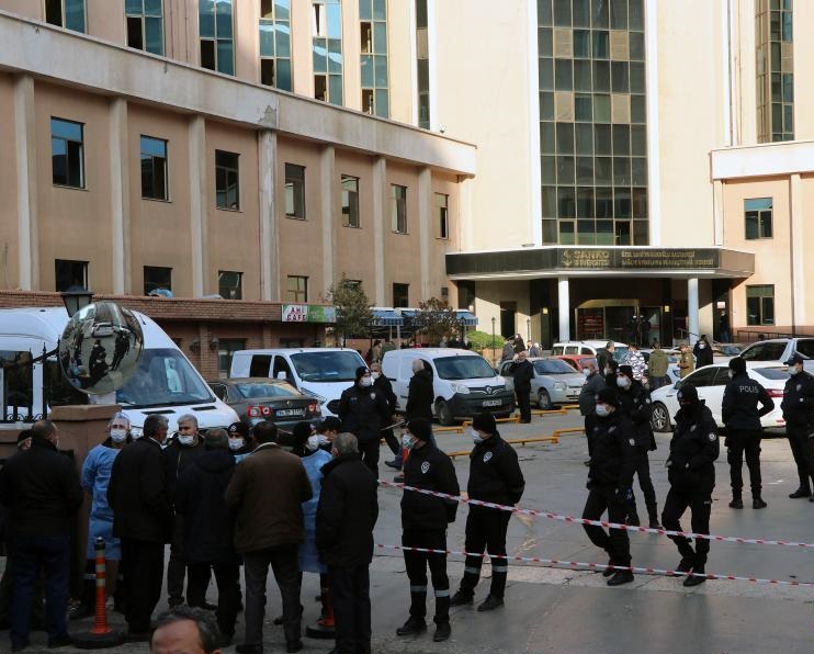 12月19日,在土耳其東南部加濟(jì)安泰普省,警察在發(fā)生火災(zāi)的私立醫(yī)院外警戒。