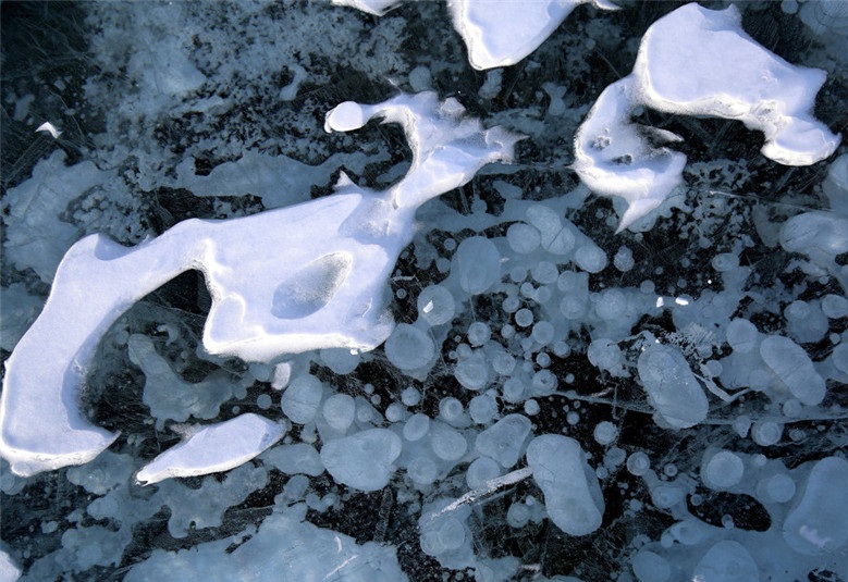 人民網(wǎng)訊 當?shù)貢r間2021年1月4日,加拿大艾伯塔省,天寒地凍,亞伯拉罕湖的湖水結(jié)冰,出現(xiàn)“氣泡冰”奇觀。