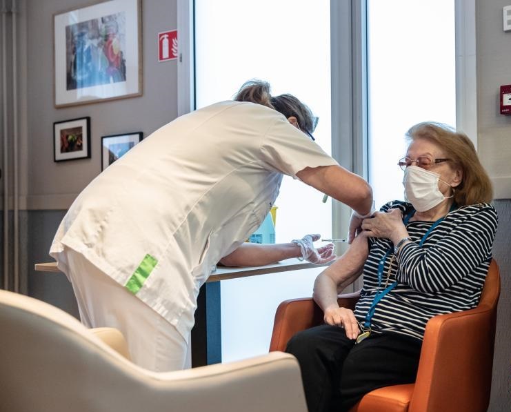 1月7日,一名女子在法國巴黎一家養(yǎng)老院接種新冠疫苗。