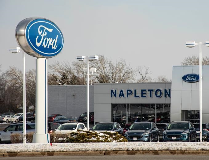 這是1月6日在美國(guó)伊利諾伊州利伯蒂維爾拍攝的福特汽車(chē)專(zhuān)賣(mài)店。