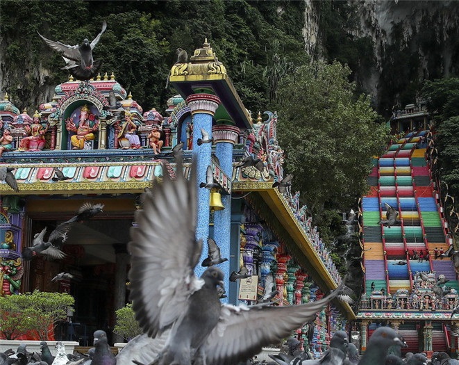 人民網(wǎng)訊 當?shù)貢r間2021年1月6日,馬來西亞吉隆坡,著名地標之一、印度教圣地黑風(fēng)洞游客稀少,階梯色彩繽紛如彩虹般絢爛。
