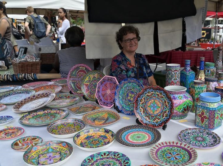 這是1月17日在斐濟(jì)首都蘇瓦的周末市場上拍攝的一名賣手工藝品的攤販。