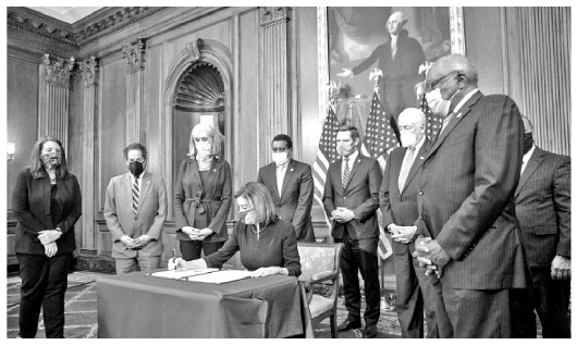 當(dāng)?shù)貢r(shí)間1月11日,鑒于6日發(fā)生的國會(huì)騷亂事件,眾議院民主黨人正式提交針對(duì)特朗普的彈劾條款草案。彈劾條款指控特朗普“煽動(dòng)叛亂”,要求對(duì)其進(jìn)行“彈劾和審判,并免除其總統(tǒng)職務(wù),取消其擁有的相關(guān)榮譽(yù)、信用和有酬職位資格”。13日下午,美國國會(huì)眾議院兩黨議員經(jīng)過辯論后以232票贊成、197票反對(duì),通過了針對(duì)特朗普的彈劾案。眾議院全體民主黨人以及10名共和黨人投了贊成票。