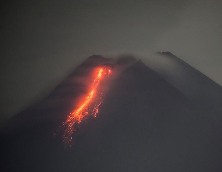 這是1月19日在印度尼西亞日惹拍攝的噴發(fā)的默拉皮火山。新華社發(fā)(蘇普里揚托攝)