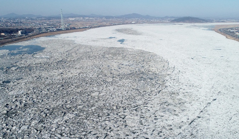 低溫造就冰封 韓國漢江結冰