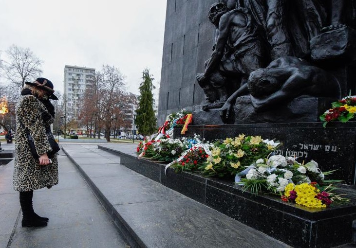 1月27日,一名女子在波蘭華沙的猶太人遇難者紀(jì)念碑前參加紀(jì)念活動(dòng)。新華社發(fā)(亞普·阿林?jǐn)z)