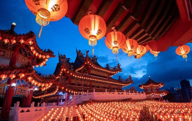 這是2月2日在馬來西亞吉隆坡天后宮拍攝的紅燈籠。