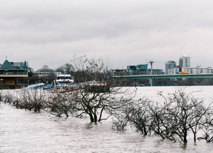 這是2月2日在德國科隆拍攝的水位上漲的萊茵河。新華社發(fā)(唐穎 攝)
