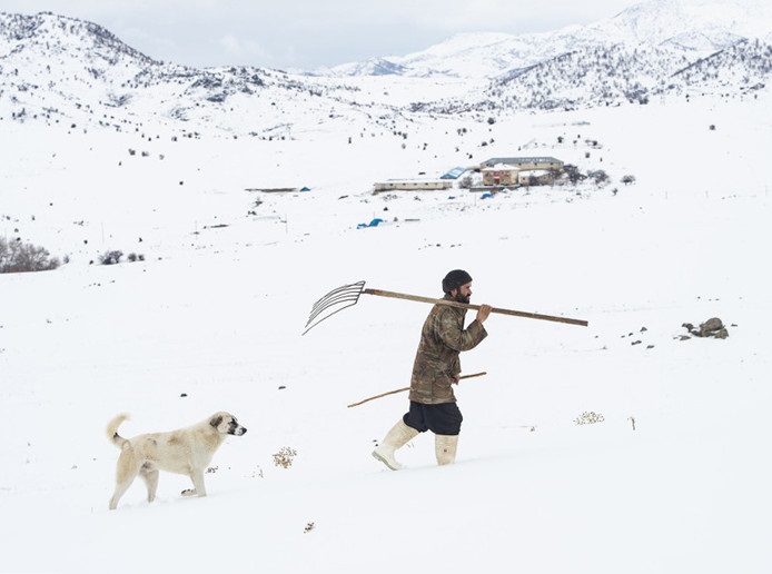 人民網(wǎng)訊 當(dāng)?shù)貢r(shí)間1月31日,土耳其通杰利,當(dāng)?shù)啬撩駧ьI(lǐng)綿羊群在雪中放牧。