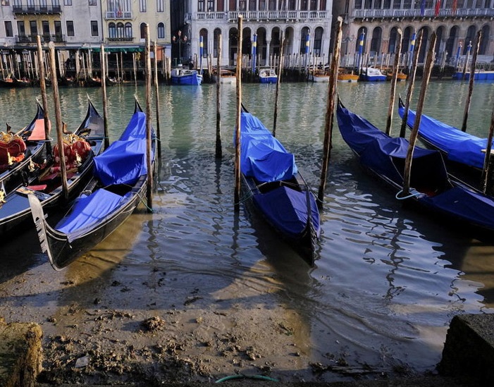 人民網(wǎng)訊 當?shù)貢r間2月26日,意大利威尼斯,由于罕見“低潮”,“水城”威尼斯運河水位下降,使得不少河道河床暴露,影響威尼斯交通和航運,導致當?shù)刂饕煌üぞ哓暥嗬瑪R淺在淤泥中。