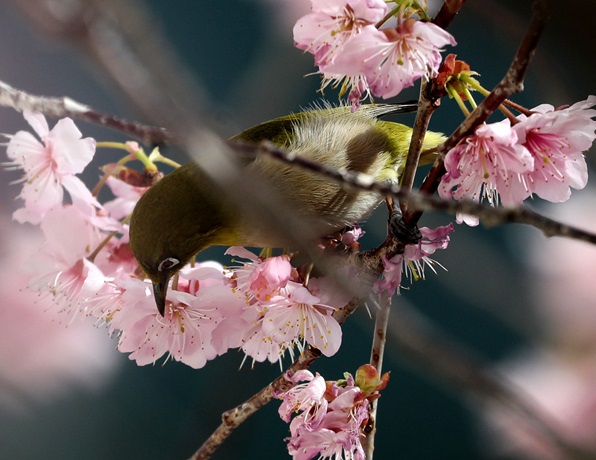 當(dāng)?shù)貢r(shí)間3月3日,韓國(guó)釜山,當(dāng)?shù)貦鸦ㄊ㈤_(kāi),鳥(niǎo)兒棲息在枝頭“聞香識(shí)花”。(圖片來(lái)源:東方IC)