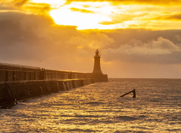 人民網(wǎng)北京3月6日電 當?shù)貢r間3月5日,英國泰恩茅斯海濱碼頭的日出給海面鋪上了一層金色。