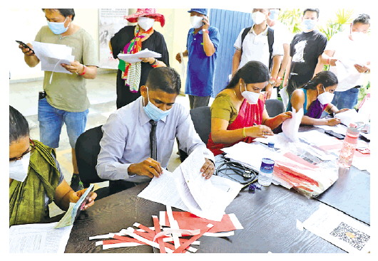 圖為斯里蘭卡衛(wèi)生部官員勘驗疫苗注射相關(guān)文件。