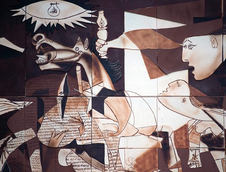 人民網(wǎng)訊 當(dāng)?shù)貢r(shí)間4月25日,西班牙北部巴斯克城鎮(zhèn)格爾尼卡,當(dāng)?shù)靥枪虆f(xié)會(huì)用巧克力一比一、全尺寸還原了世界名畫(huà)《格爾尼卡》,這幅巧克力復(fù)刻的世界名畫(huà)長(zhǎng)7.76米,高3.49米,以紀(jì)念1937年法西斯納粹轟炸西班牙北部巴斯克的重鎮(zhèn)格爾尼卡。這幅巧克力藝術(shù)品將在西班牙多地展出。