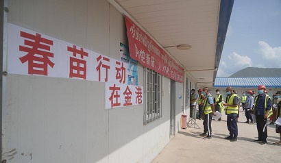 “防控新冠、人人有責(zé)、齊心協(xié)力打贏疫情?!薄屑黼p語的紅色橫幅前,金邊-西港高速公路(簡稱“金港高速”)項目的數(shù)百名中方員工盼來了來自祖國的新冠疫苗。