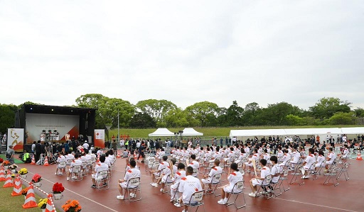 5月11日至12日,東京奧運火炬接力相關(guān)活動在日本福岡縣舉行。由于受新冠肺炎疫情影響,福岡縣境內(nèi)的火炬?zhèn)鬟f取消了火炬手路上跑動傳遞,改為舉行點火儀式,由火炬手輪流在儀式的舞臺上交接圣火,不允許普通觀眾入場觀看。