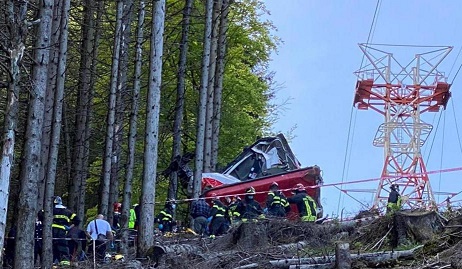 5月23日,救援人員在意大利皮埃蒙特區(qū)的纜車事故現(xiàn)場(chǎng)工作。