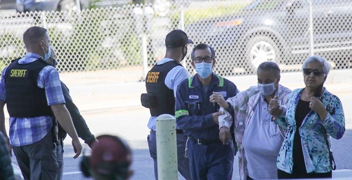 5月26日,在美國加利福尼亞州圣何塞,人們在槍擊事件后前往臨時設立的安全地點。新華社發(fā)(董旭東攝)