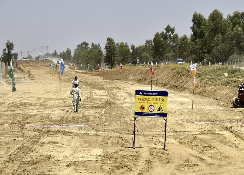 這是5月28日在巴基斯坦西北部開伯爾-普什圖省拍攝的拉沙卡伊特別經(jīng)濟(jì)區(qū)項(xiàng)目施工現(xiàn)場(chǎng)。