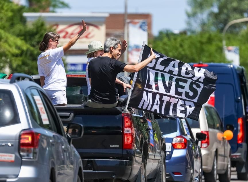 6月19日,民眾在美國伊利諾伊州埃文斯頓參加六月節(jié)慶?;顒印P氯A社發(fā)(喬爾·萊納攝)