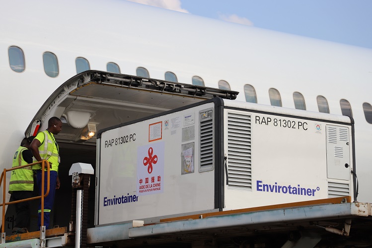 中國政府援助中非共和國的一批新冠疫苗6日運抵中非首都班吉。
