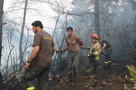 7月29日,黎巴嫩民防人員在阿卡爾省火災(zāi)現(xiàn)場滅火。