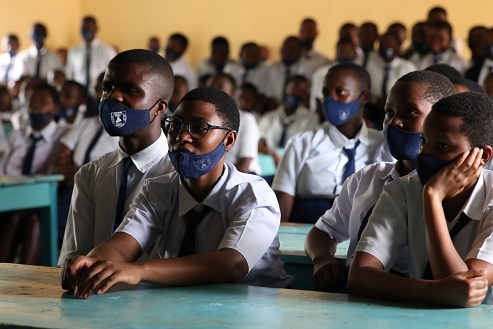 2月4日,在盧旺達(dá)首都基加利的一所學(xué)校里,學(xué)生們收看北京冬奧會(huì)開幕式直播。