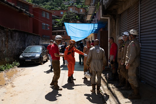 2月22日,在巴西里約熱內(nèi)盧州城市彼得羅波利斯,消防人員準(zhǔn)備開(kāi)展搜救行動(dòng)。